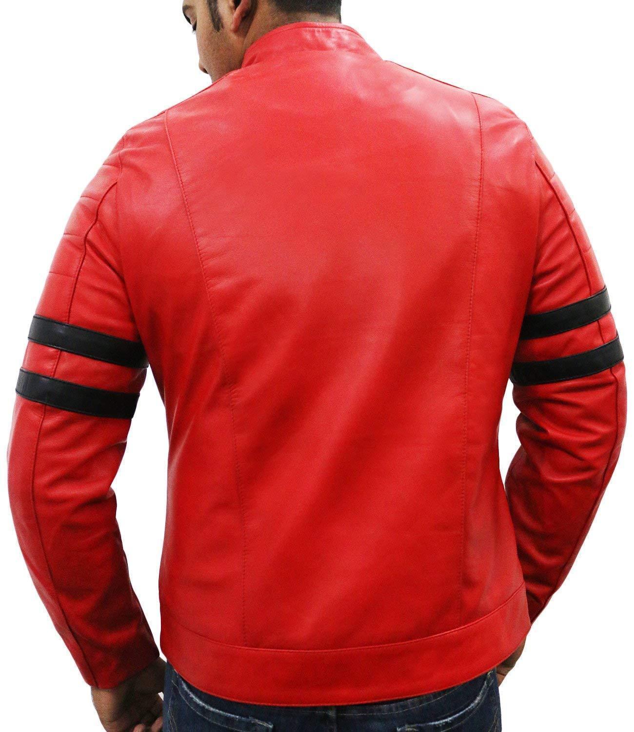 Red Genuine Leather Black Stripped Jacket for Men Riders Jacket