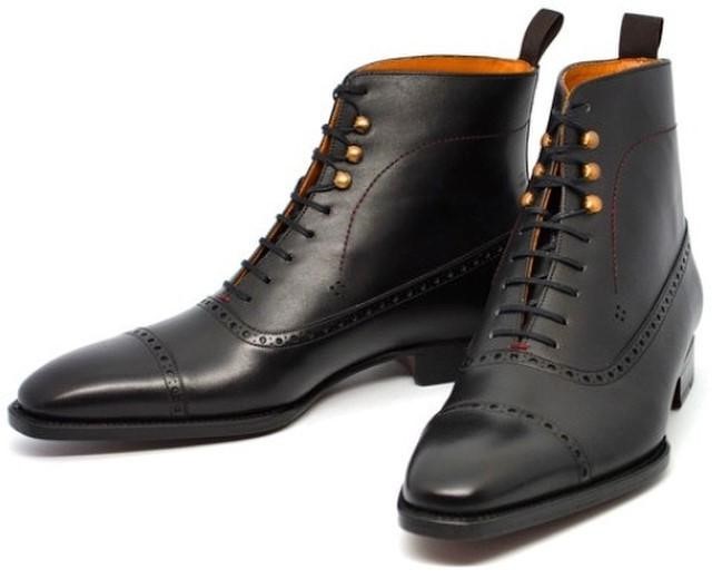 Handmade Men's Black Leather Ankle High Boot, Cap Toe Lace Up Casual Boots for Men