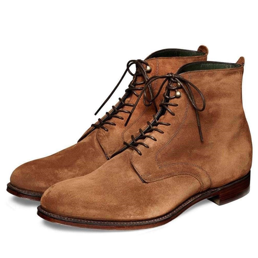 Elegant Handmade Men’s Ankle High Suede Lace Up Boots, Men’s Brown Suede Boots