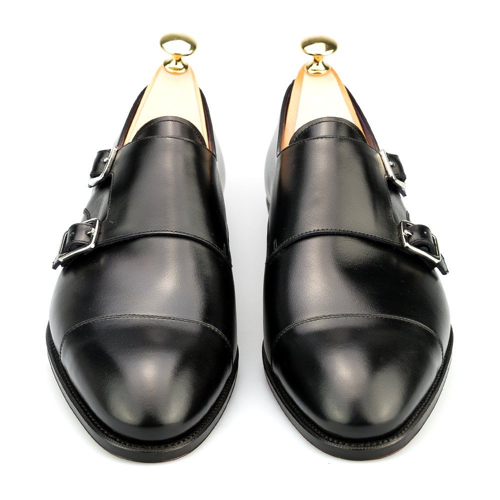 Handmade Men's Black Double Monk Strap Leather Boots, Luxury Formal Business Shoes for Men