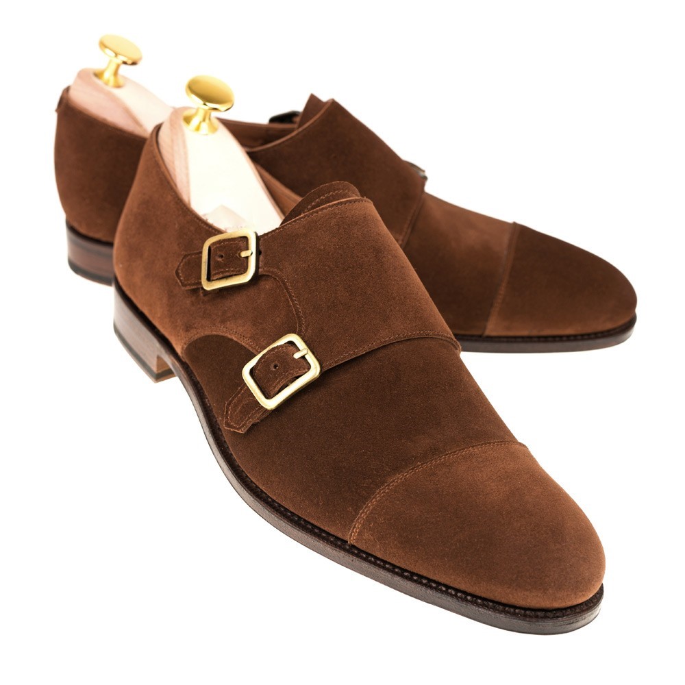 Handmade Men's Camel Brown Suede Double Monk Strap Leather Boots, Luxury Formal Business Shoes for Men