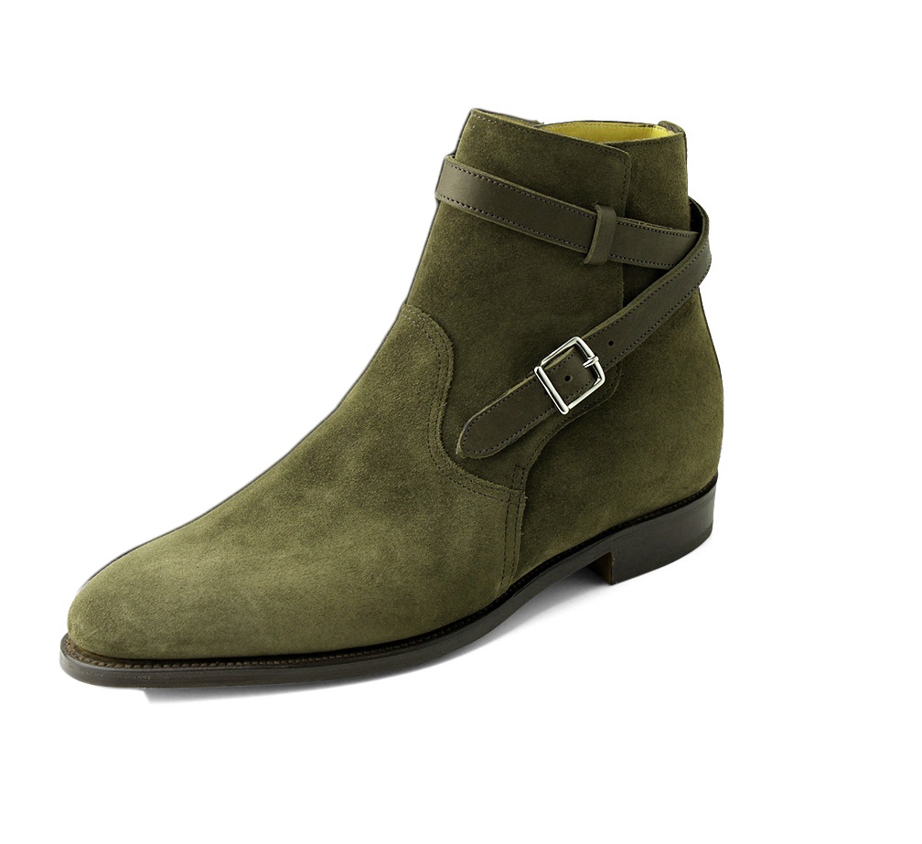Handmade Ankle High Men's Green Suede Leather Jodhpur Boots