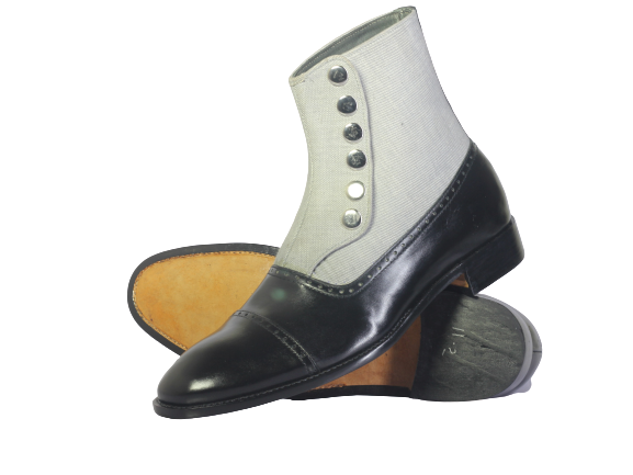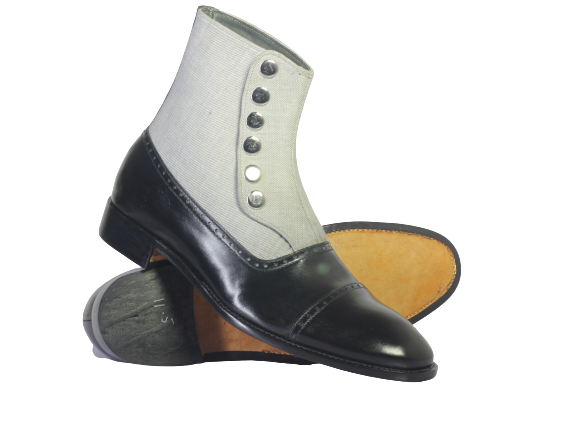 Handmade Ankle High Black Gray Boots, Leather Suede Cap Toe Casual Button Boots for Men