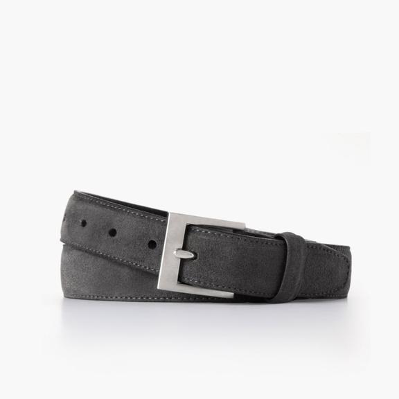 Men's Classic Gray Leather Belt with Silver Alloy Buckle
