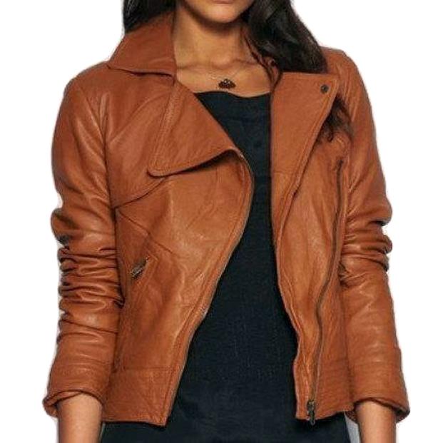 Women's Stylish Brown Wide Collar Fashion Leather Jacket Crafted with Premium Quality Leather.