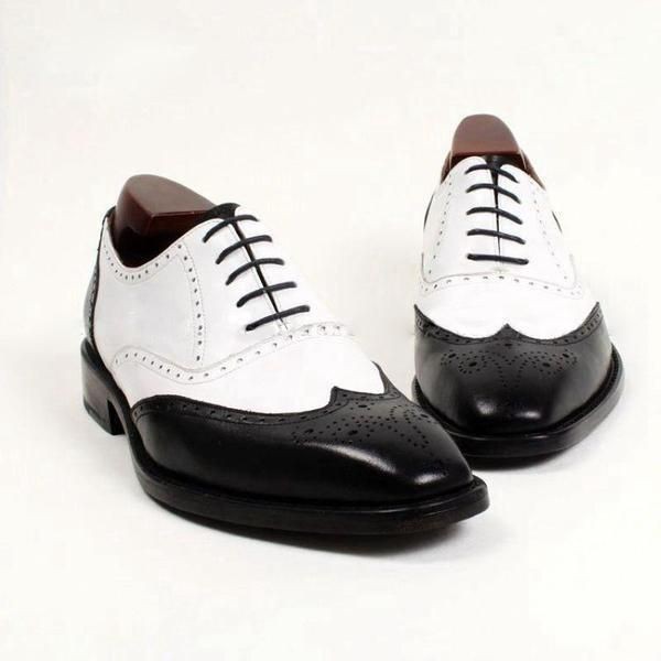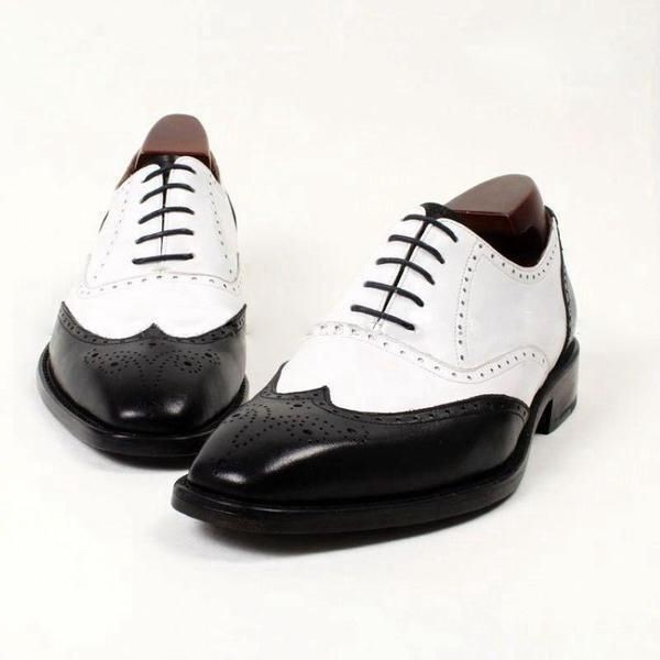 Oxford Black & White Leather Wingtip Shoes for Men, Spectator Shoes, Dress Shoes