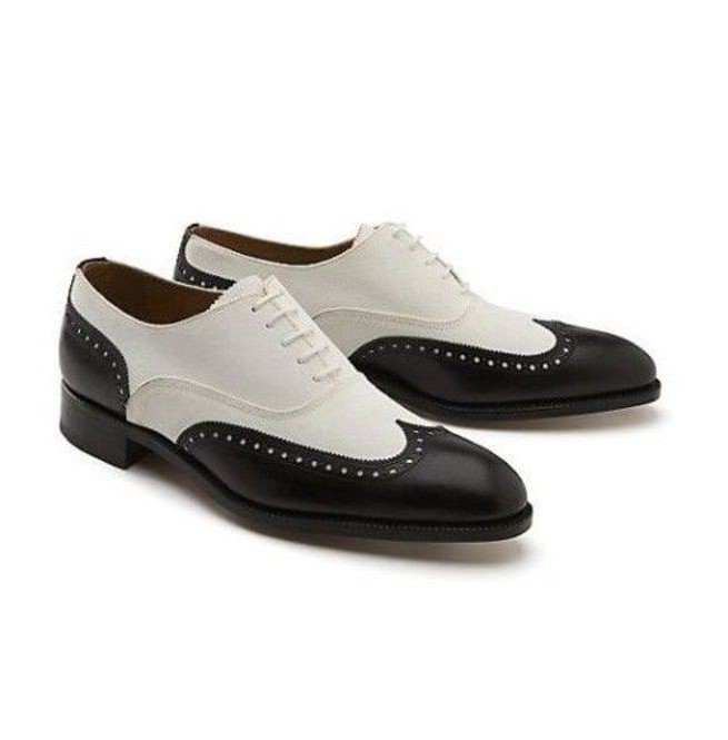 Oxford White & Black Leather Wingtip Shoes for Men, Spectator Shoes, Dress Shoes