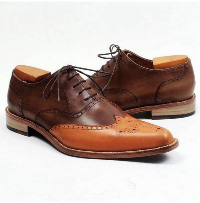 Handmade Two Tone Brown Wingtip Brogue Shoes, Lace Up Brown Leather Shoes, Dress Shoes