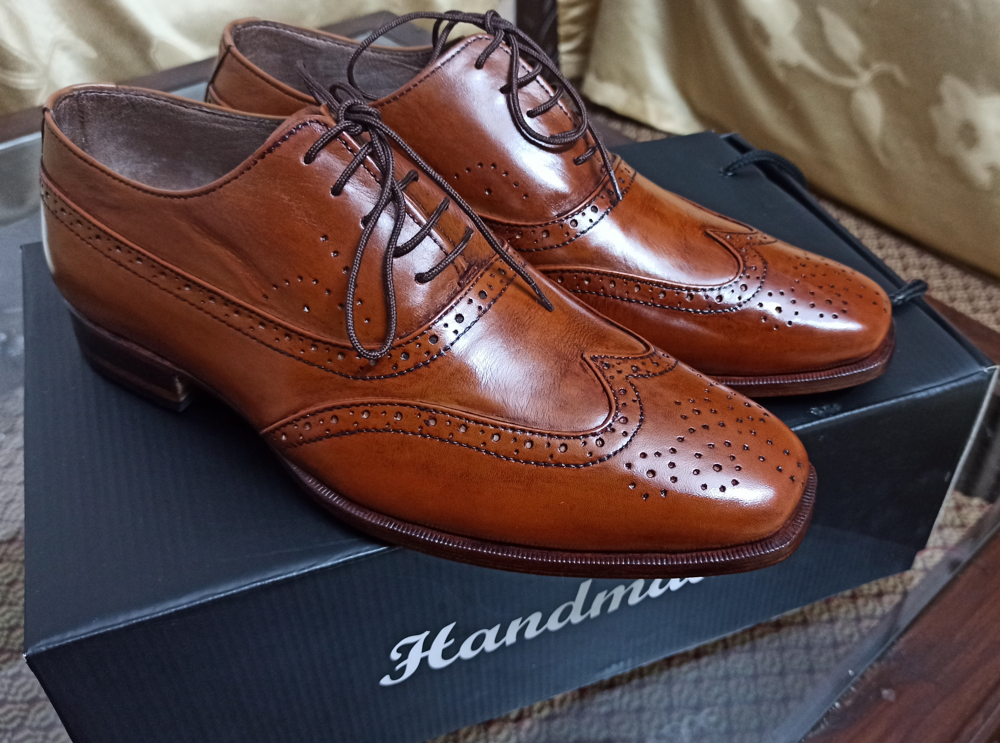 Oxford Handmade Brown Leather Wingtips Spectator Dress Shoes for Men Oxford Shoes, Brogue Shoes, Fashion Shoes