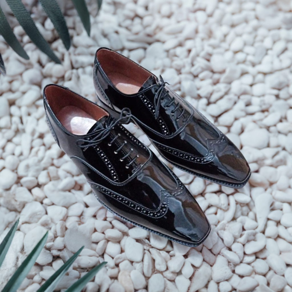 Italian Handmade Black Patent Leather Dress Shoes for Men Oxford Shoes, Brogue Shoes, Fashion Shoes
