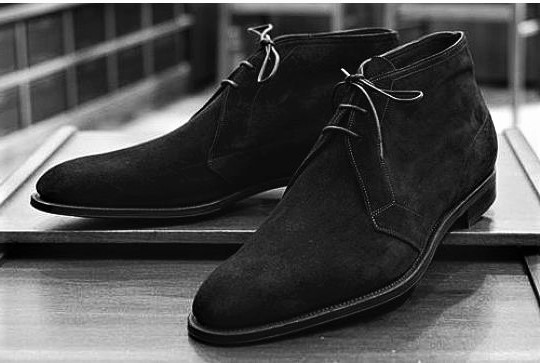 Black Suede Leather Dress Boots for Men Lace up Black Chukka Boots