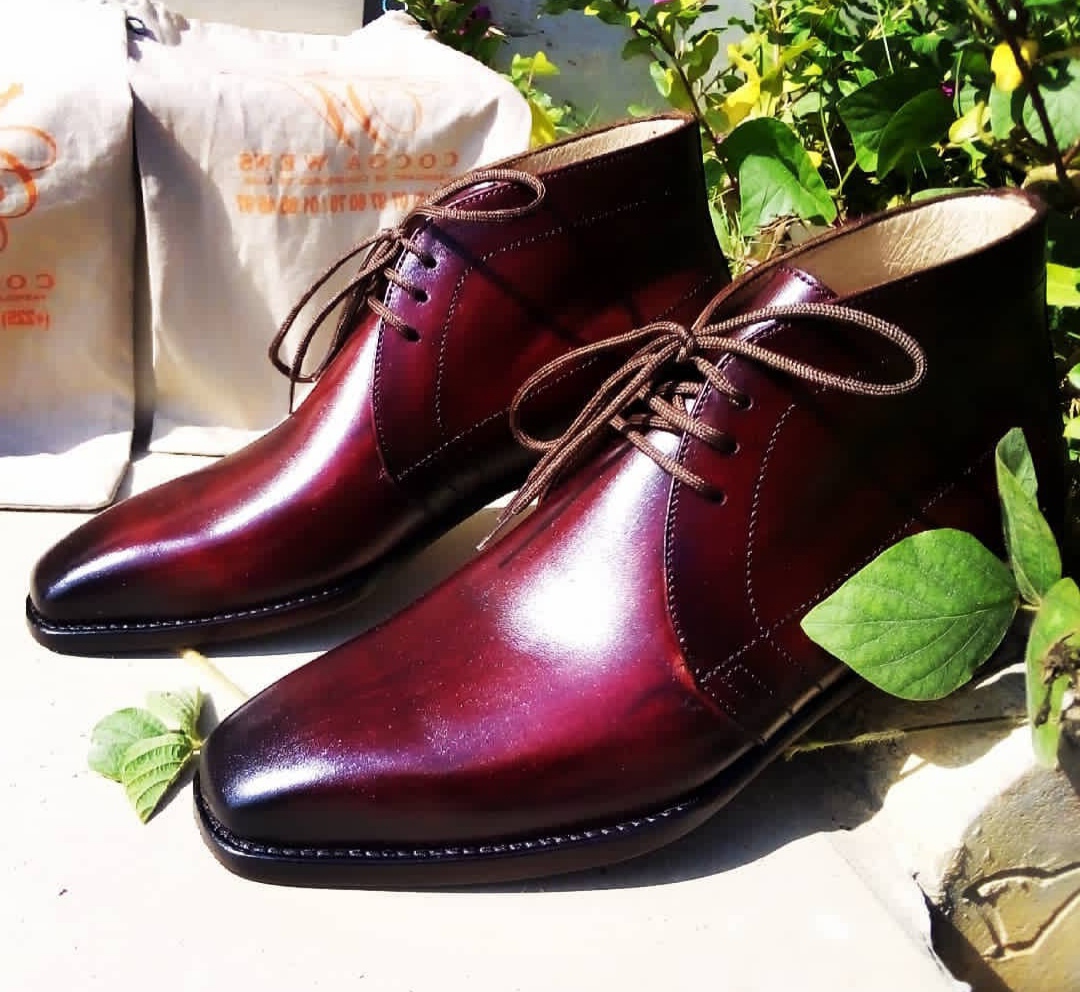 Burgundy Leather Dress Boots for Mens Formal Laceup Dress Shoes