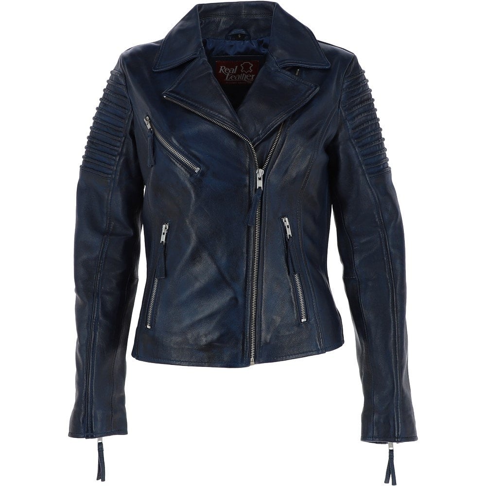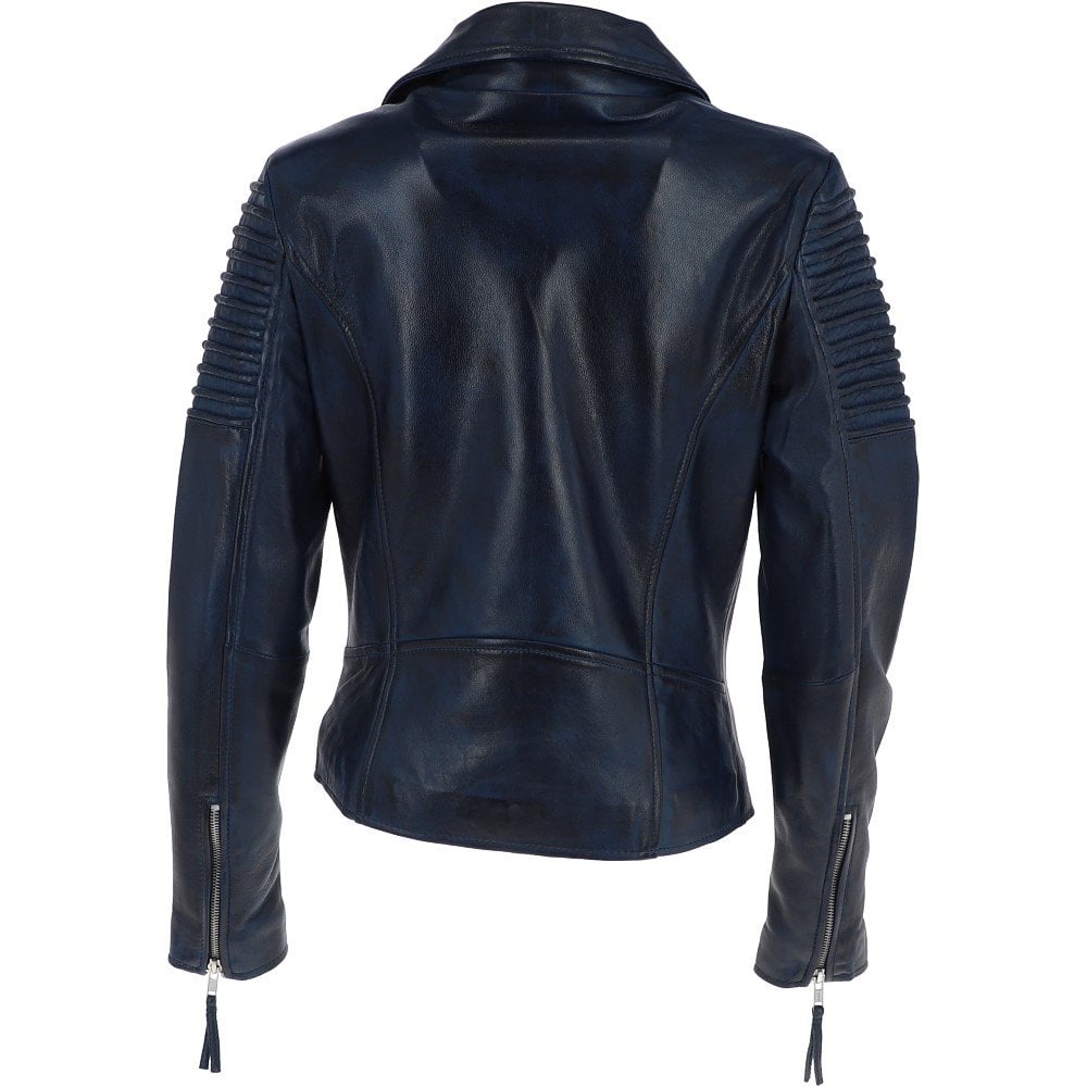 Women Blue Leather Biker Jacket Stylish Women Leather Jacket