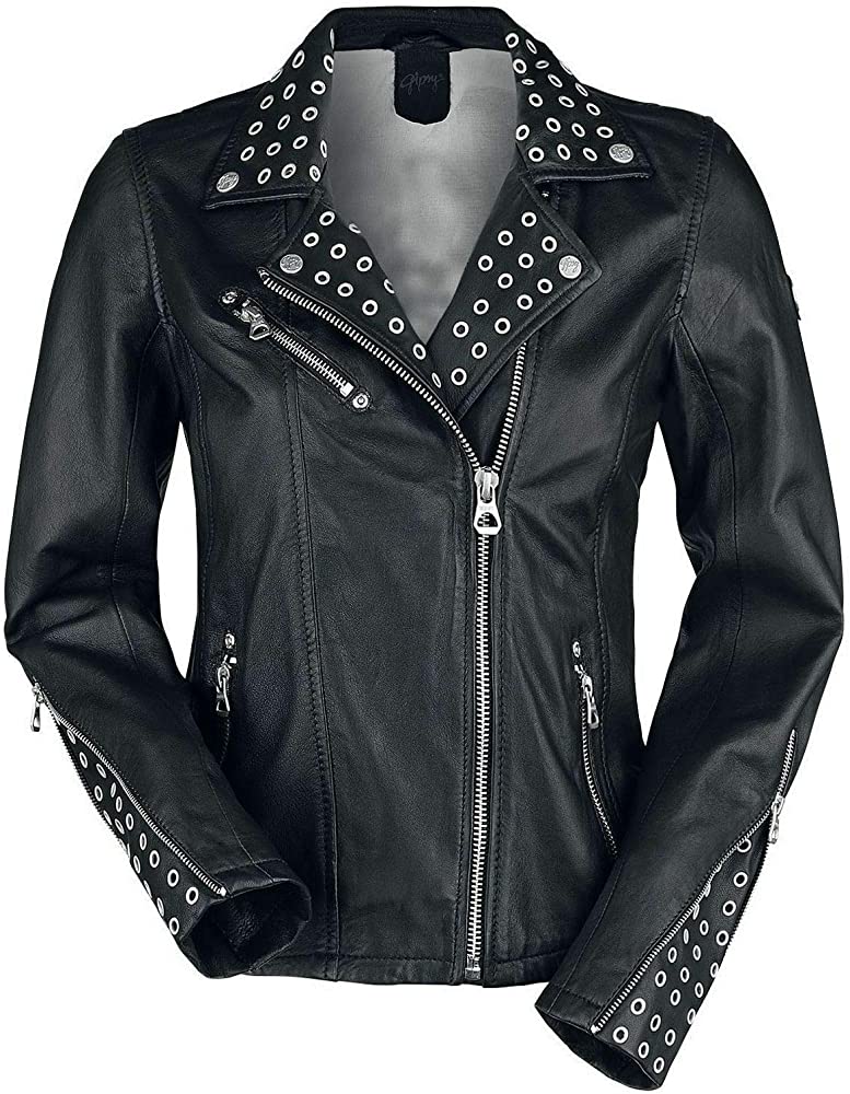 Women Cool Rivet Black Leather Slim Fit Biker Studded Jacket