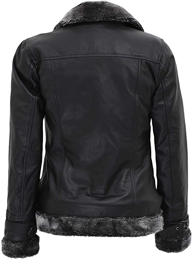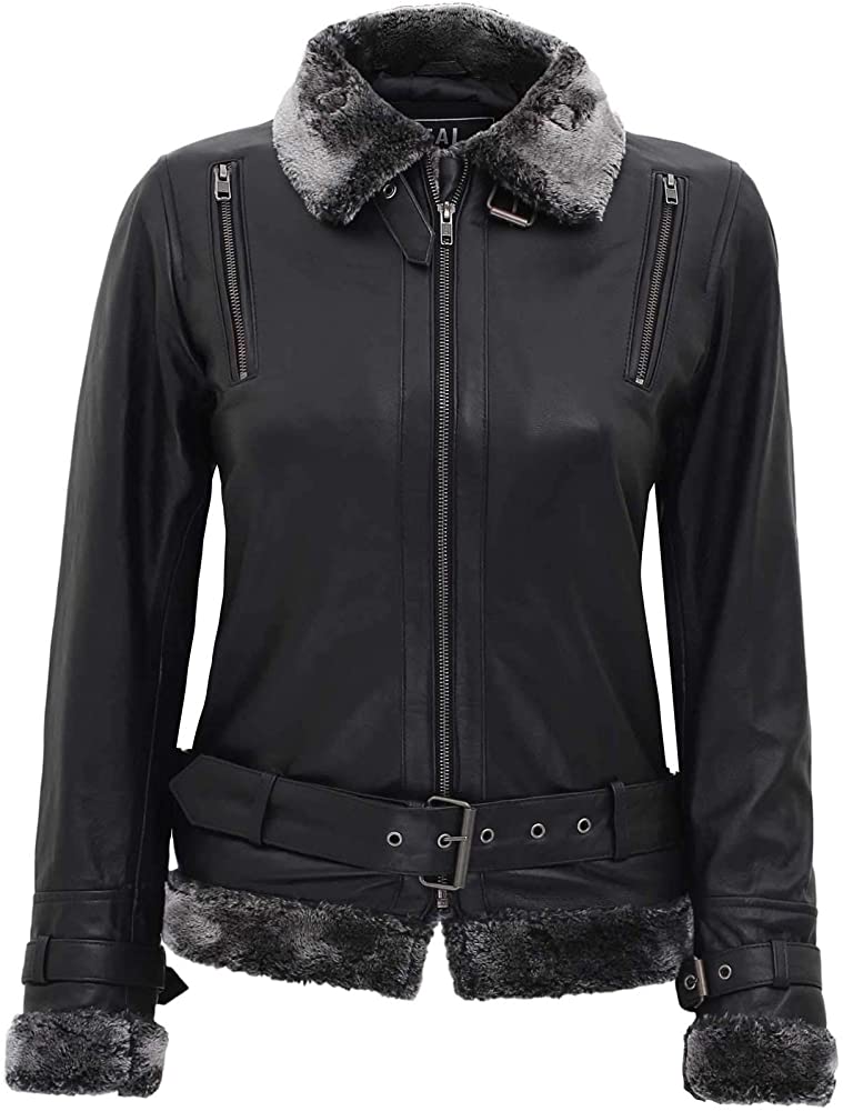 Western Fashion Black Leather Fur Jacket Women Belted Jackets