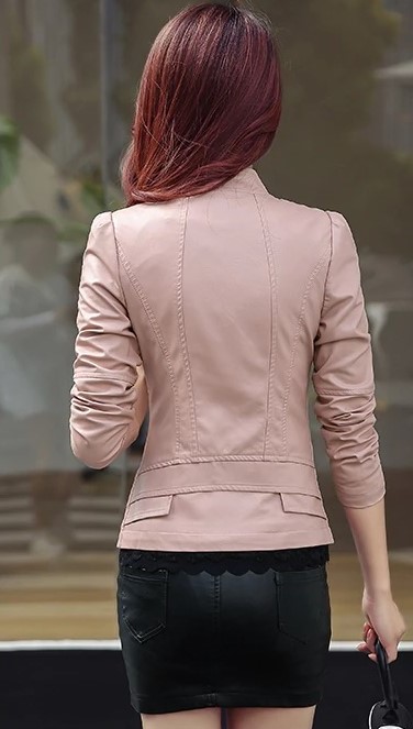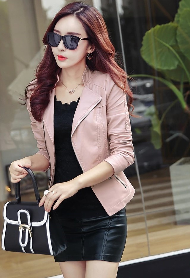 Women Pink Leather Cropped Fashion Jacket Short Punk Top Skirt Jacket