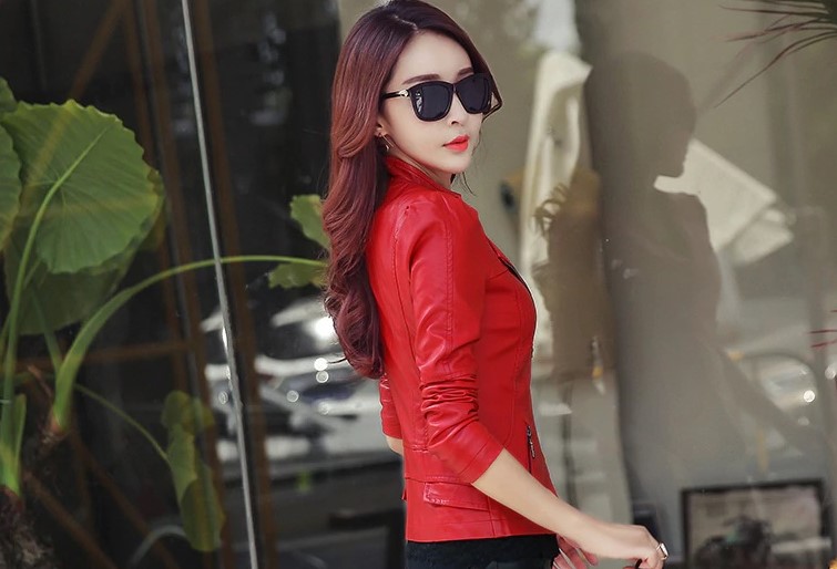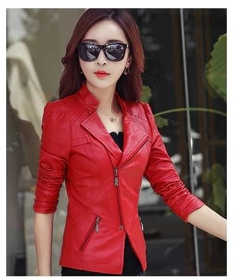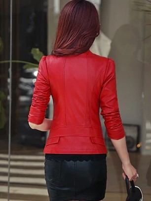 Women Red Leather Cropped Fashion Jacket Short Punk Top Skirt Jacket