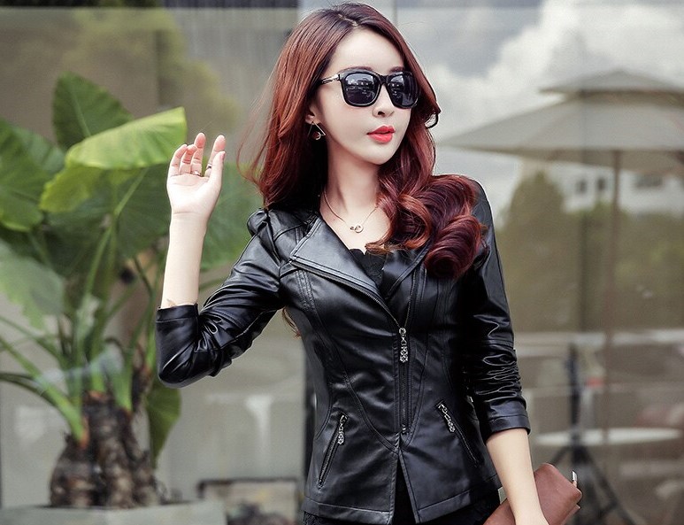 Women Black Leather Cropped Fashion Jacket Short Punk Top Skirt Jacket