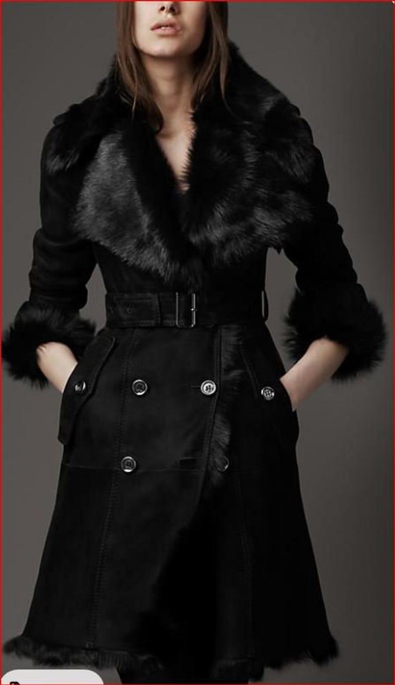 Western Black Leather High Fashion Trench Coat for Women Fur Coat