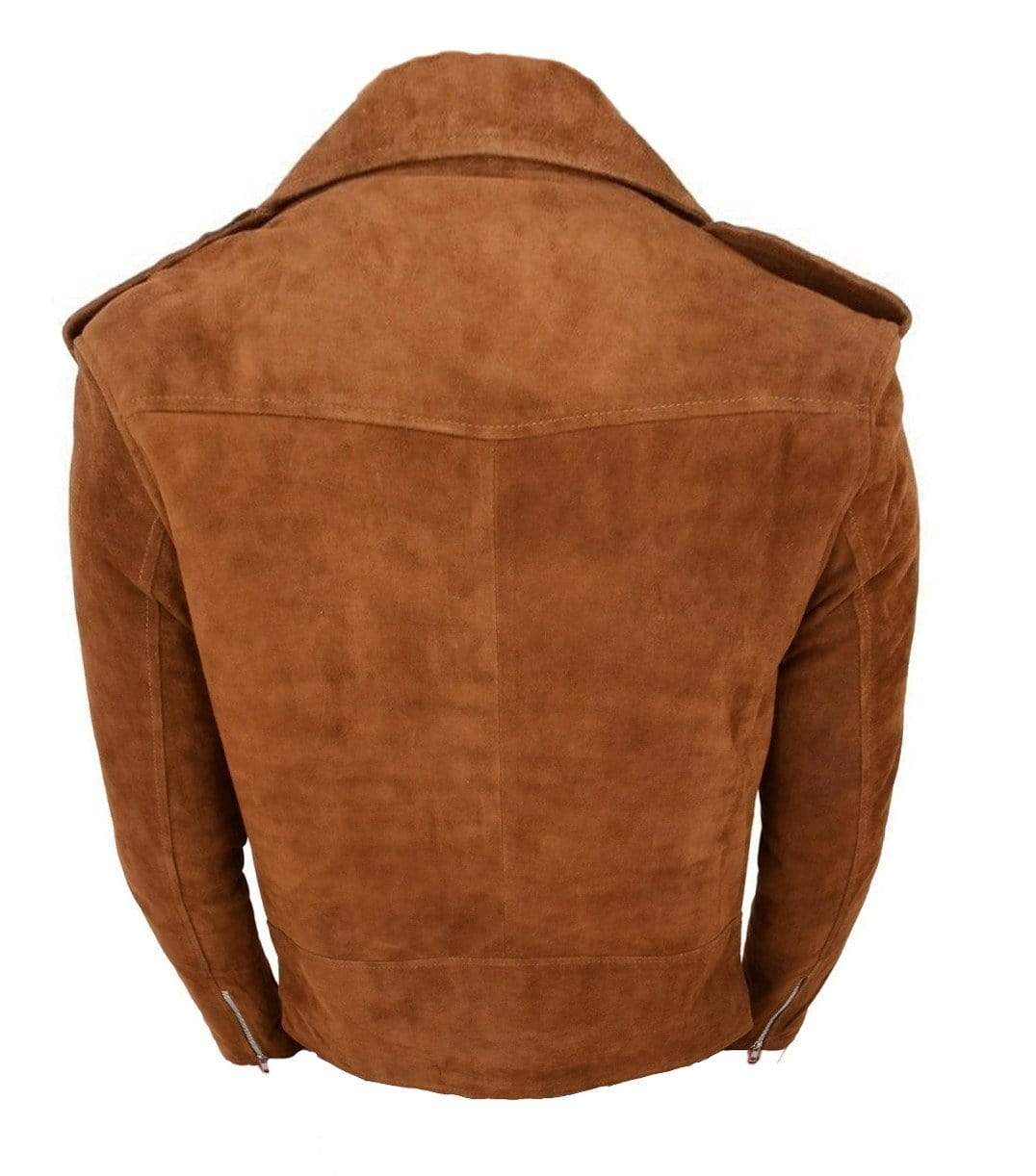 Men's Brando Style Suede Leather Jacket Brown Mens Jacket
