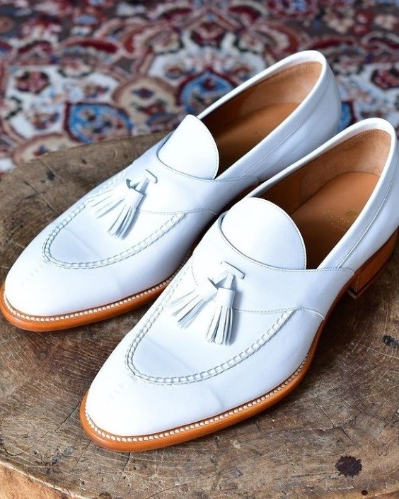White Tassel Fashion Shoes for Men's White Dress Shoes