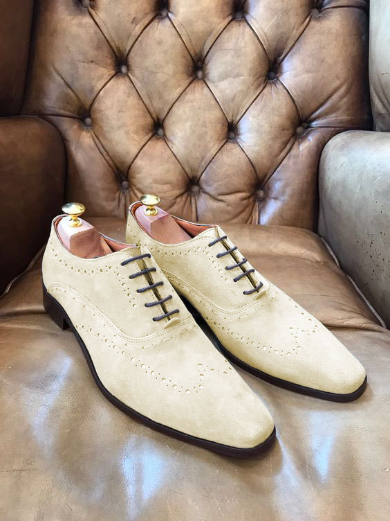 Off White Wingtips Brogue Shoes for Men's White Dress Shoes