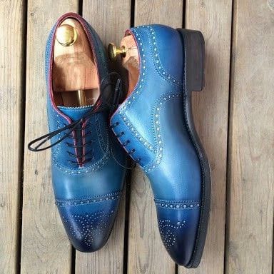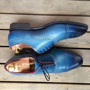 Luxury Blue Patina Shoes for Men's Brogue Toe Dress Shoes