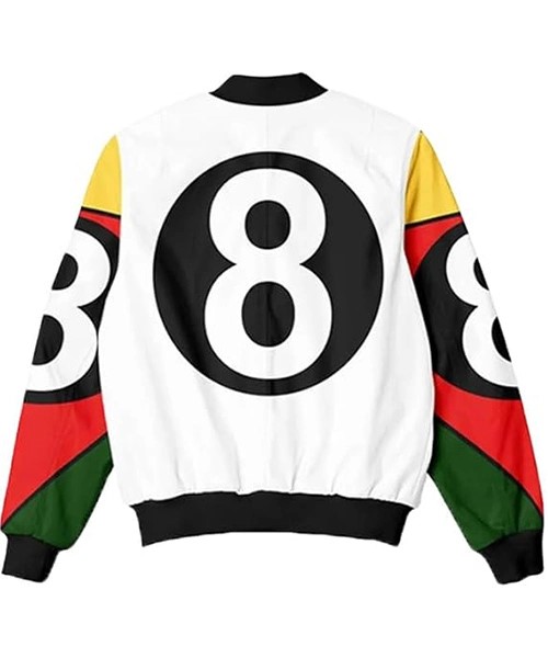 Crafted from high-quality real leather, this white bomber jacket features the signature red, yellow, and black 8 Ball patches on the sleeves and back—instantly recognizable and loved by fans of 90’s street style, hip-hop fashion, and classic Americana outerwear.
